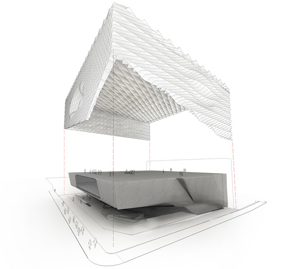 موزه ی جدید هنرهای معاصر در مرکز شهر لس انجلس واقع در یک طرف خیابان همچنین در طرفی که سالن کنسرت والت دیسنی قرار دارد ، پروژه ی سه طبقه ای که در آینده در یک پوسته ی لانه زنبوری همانند یک پرده ای که به صورت نامتقارن در نمای ساختمان پیچ و تاب خورده است و در نتیجه در فضایی فیلتر شده برای تعریف ورودی فضای داخلی ایجاد می شود قرار دارد