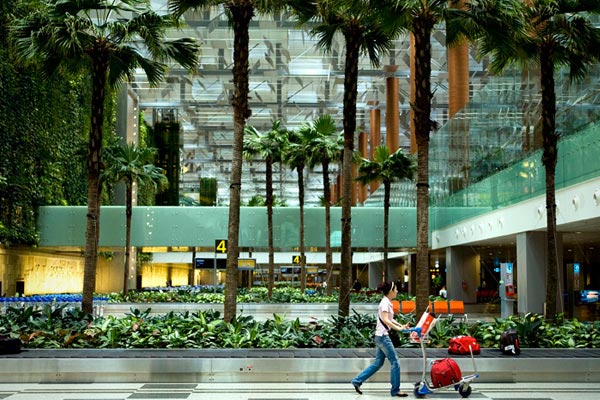 سنگاپور چانگی حاصل یک طرح بلند پروازانه و گسترش آن در سال 2000 است. در داخل استفاده از گیاهان طبیعی از ویژگی های بارز است. نورگیرهای این فرودگاه که به شکل بال پروانه هستند به خوبی برای روشنایی فضای داخلی استفاده شده و میزان حرارت توسط سنسورهای برنامه ریزی شده کنترل می شود. فضای سبز عمودی پنج طبقه ملقب به دیوار سبز تکمیل کننده عناصر طبیعی به کار رفته در این فرودگاه است.