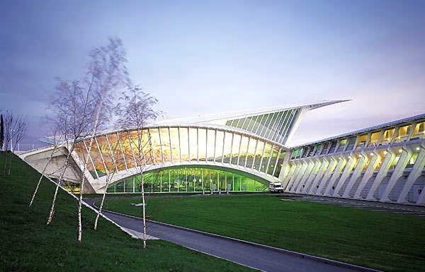 قابل توجه ترین مشخصه سنت اگزوپری دو قوس همگرای فولادی بوده که پرنده در حال پرواز را تداعی می کند. سانتیاگو کالاتراوا طراحی این ساختمان را بر عهده داشته و طراحی بال مانند به خوبی از نور روز برای روشنایی فضای داخل استفاده کرده است. اگرچه یک قطار پر سرعت با فرودگاه در ارتباط است اما رویای کالاتراوا برای مبدل کردن این منطقه به یک مرکز بین المللی با شکست مواجه شد.