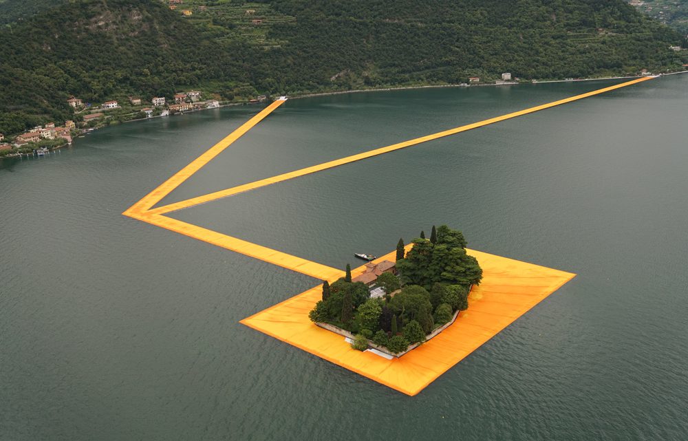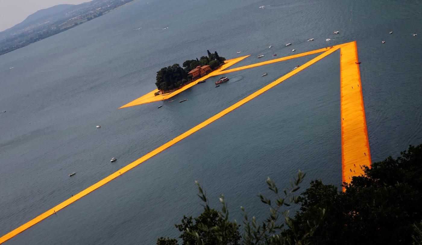 کانسپت اسکله شناور توسط زن و شوهری به نام های کریستو و ژان کلود در دهه 70 میلادی برای نمایشگاه های موقت مطرح شد. اما تا حالا هم مشخص نبوده که این دو نفر در مورد کدام دریاچه این طرح مفهومی را ارائه کرده اند، و یا کدام دریاچه برای طرح آنها مناسب تر بوده است. ابتدا طرح اسکله 2000 متری بر روی دریاچه ریو دلا پلاتا آرژانتین در برنامه قرار داشت که از ایده کرستو و ژان کلود الهام گرفته بود، که انجام نپذیرفت. ایده فوق در یک جزیره مصنوعی در توکیو هم مطرح شد که مانند آرژانتین تحقق نیافته است. علت این مخالفت ها جلوگیری از تولید هزینه های زیاد برای یک نمایشگله موقت در سال های گذشته بوده است.