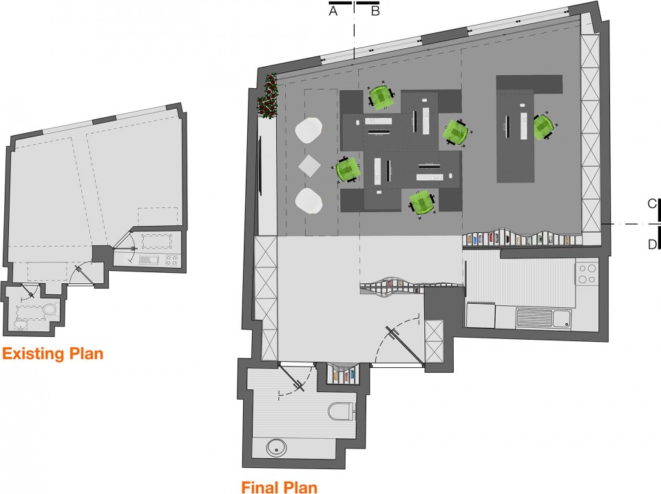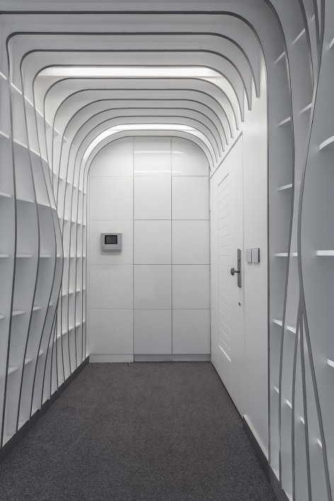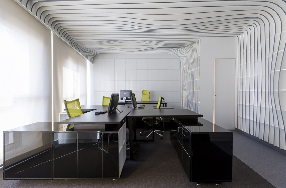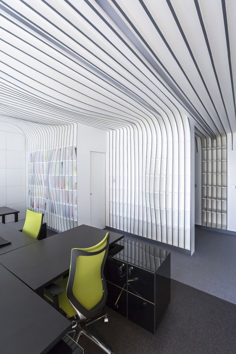 که این طرح در فضایی کوچک ( 52 متر مربع ) و با تأکید بر نمایش ساده ولی متفاوتِ کتب و مجلاتی که در دفتر به نمایش گذاشته می شوند، انجام شده است. ایده اصلی مبنی بر این که کتابخانه، عنصر اصلی معماری پروژه بوده و به شکل عناصر ساختاری معماری داخلی همچون دیوار، سقف و جداکننده ها در کل فضا جاری گردد. کتابخانه ای که در مواجهه ی اولیه مخاطب دیواره ای مواج با رنگ های ملایم و متنوع در قسمت های مختلف را نمایش می دهد و با حرکت و جابجایی وی؛ چهره و عملکردی نو را از خود بروز می دهد.