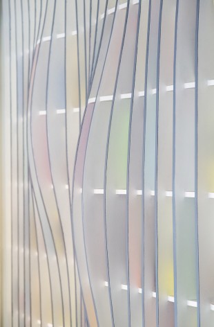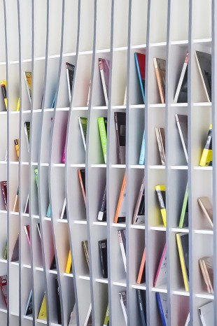 مخاطب در این هنگام است که در می یابد رنگ های ملایم دیواره، انعکاسی لطیف از رنگ جلد کتب و مجلات مختلف بر جداره جانبی قفسه ها بوده است. تأثیری که با هر جابجایی کتابب و مجله در قفسه ها، ترکیب رنگی جدیدی را برای دیوار به عنوان پاسخی به رفتار مخاطب می آفریند. هندسه طرح در حکمت مواج خود و همه اِلِمان ها در جزئیات جاری خویش، وظیفه دارند با صراحتی غیر تکراری، اهمیت کتاب و سایر نشریات را در تار و پود بافتی فرهنگی به ناظر ارائه کنند، بی آنکه موازین ارگونومی را برای کارکنان مخدوش سازند. قفسه ها، نه تنها محل استقرار کتب و نشریات اند، بلکه به گونه ای آن ها را به ناظر تعارف می کنند. نگاه ناظر که از همان ابتدا بر موج خطوط و لبه ها سوار می شود، حتی بدون ارتباط با متن کتب و نشریات با متنی کلّی تر، ارتباط برقرار می کند که در فضایی دوستانه و آرامش بخش جاری است. در این متنِ کلان که در محدوده ای لطیف خلاصه شده است، او آموختن را می آموزد. و احساسش با نور و رنگ ملایمی که احاطه اش کرده اند، در می آمیزد، شاید برای لحظاتی در برکه ی همه ی چیزهایی که فراموش کرده، غوطه ور می شود و با این یادآوری به سطحی از هوشیاری و آگاهی دست می یابد، هدف طراح همین آگاهی بوده است.